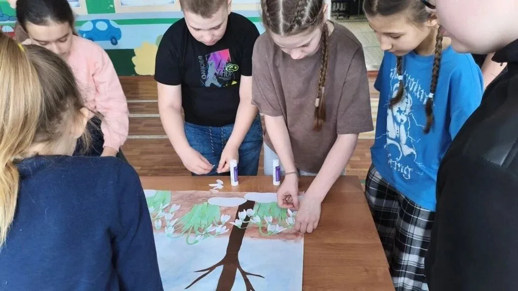 Финальным аккордом стала выставка «Как прекрасен этот мир» и создание чудесной коллективной работы «Первоцветы».